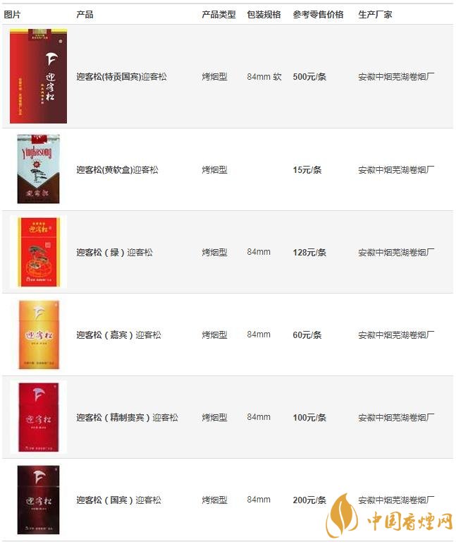 迎客松香煙品牌包括了迎客松(特貢國(guó)賓),迎客松(黃軟盒),迎客松(綠),迎客松(嘉賓),迎客松(精制貴賓),迎客松(國(guó)賓),迎客松(新),迎客松(禮賓)等。那么迎客松香煙多少錢一包呢?下面香煙網(wǎng)小編為大家介紹迎客松香煙價(jià)格表和圖片大全。