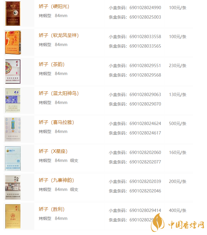 嬌子香煙是四川著名的香煙品牌,這款香煙定位的市場時中高端市場。嬌子香煙可以說是送禮的最佳選擇之一了。但是嬌子香煙種類非常多,多達八十多種。那么不同類型的嬌子香煙多少錢一包嗎?以下就由香煙網(wǎng)小編給大家介紹嬌子香煙價格表圖。