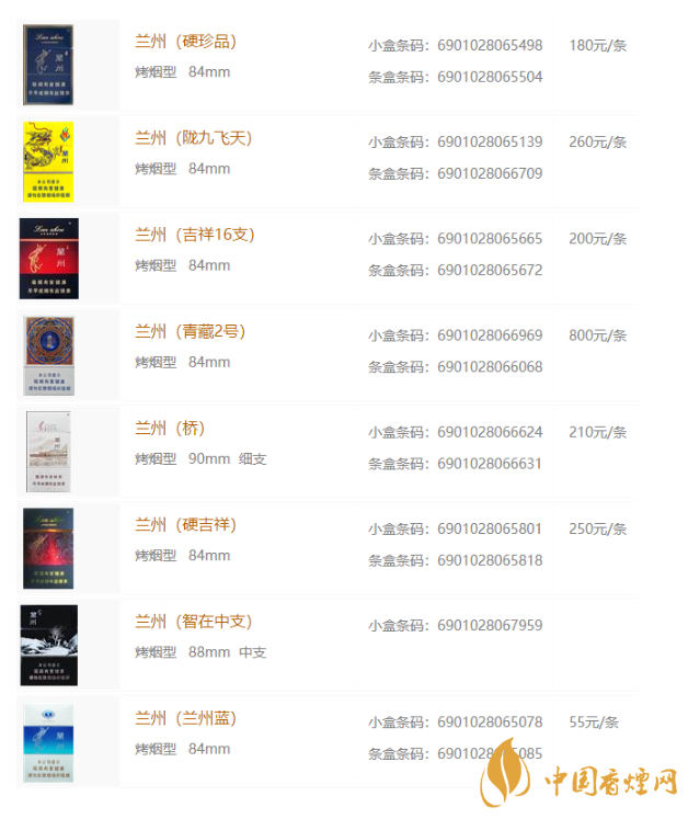 大家還記得幾年前《董小姐》這首歌嗎?這首民謠一度火爆全國(guó)。而且這首歌里有一句歌詞“陌生的人請(qǐng)給我一支蘭州”,這里面提到的蘭州香煙,大家有沒(méi)有了解過(guò)呢?蘭州卷煙品牌創(chuàng)立于三十多年前,2004年進(jìn)入《中國(guó)卷煙產(chǎn)品百牌號(hào)名錄》;2006年11月“蘭州”系列卷煙產(chǎn)品被中國(guó)質(zhì)量協(xié)會(huì)評(píng)定為質(zhì)量級(jí)別最高的“AAA”級(jí);2005年銷(xiāo)量超過(guò)50萬(wàn)箱,品牌規(guī)模位居全國(guó)第19位。那么蘭州香煙多少錢(qián)一包?以下便是小編給大家介紹的2020年蘭州香煙價(jià)格表圖。