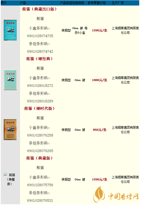 小熊貓香煙全部?jī)r(jià)格表圖一覽 2025小熊貓香煙最新價(jià)格