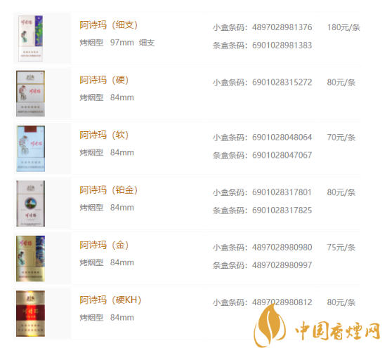 阿詩(shī)瑪香煙是知名的香煙品牌,那么阿詩(shī)瑪香煙多少錢一包?這里小編將為大家介紹6款阿詩(shī)瑪香煙價(jià)格以及信息參數(shù)。以下香煙網(wǎng)小編為你介紹2020年阿詩(shī)瑪香煙價(jià)格表圖以及相關(guān)信息,希望對(duì)你了解阿詩(shī)瑪香煙價(jià)格有所幫助。