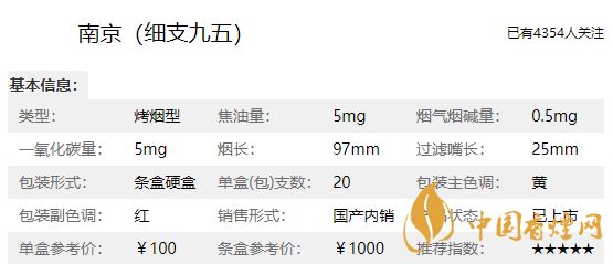品牌:南京九五至尊細(xì)支