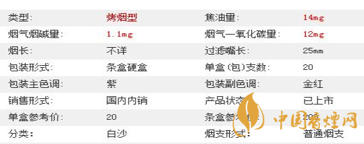 白沙紫和采用白色豎紋卷煙紙,煙絲端切口較平整,煙絲油潤(rùn)金黃,水松紙采用的是鐳射光柱紙,香味醇正濃厚,渾圓一團(tuán),煙氣飽滿(mǎn),入喉順暢,“醇和”之謂所言不虛。經(jīng)調(diào)查白沙紫和售價(jià)為20元/包。