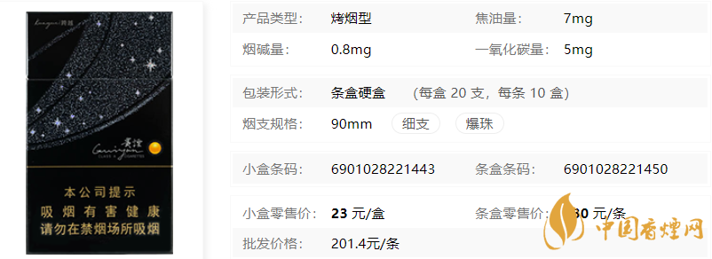 | 煙長(zhǎng):90mm | 過(guò)濾嘴長(zhǎng):25mm | 包裝形式:條盒硬盒 | 單盒(包)支數(shù):20 |