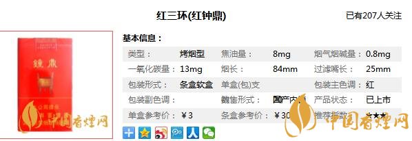 紅三環(huán)香煙是安徽中煙工業(yè)公司滁州卷煙廠于1984年創(chuàng)立的,當(dāng)時(shí)品牌立意為紀(jì)念中國(guó)女排在世界大賽中連續(xù)獲得三次世界冠軍,三環(huán)象征著三連冠,紅三環(huán)香煙被賦予了新的寓息,象征著廠家、商家和消費(fèi)者心心相印,緊密相連。那么在介紹紅鐘鼎香煙價(jià)格表之前,先來(lái)看看這款紅鐘鼎煙多少錢一包,這款香煙的售價(jià)為3元/包。