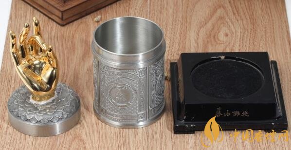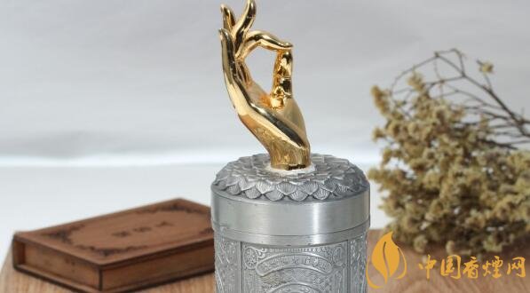 在泰山佛光錫罐圖片中這款煙價格高的原因是外包裝比較值錢,它的外包裝是一種圓筒狀盒子,上面有只佛手,造型別致,金光燦燦,堪稱奢華,這款香煙可謂是泰山系列的扛鼎之作,泰山佛光系列錫罐24k金佛手是泰山系列最貴的。