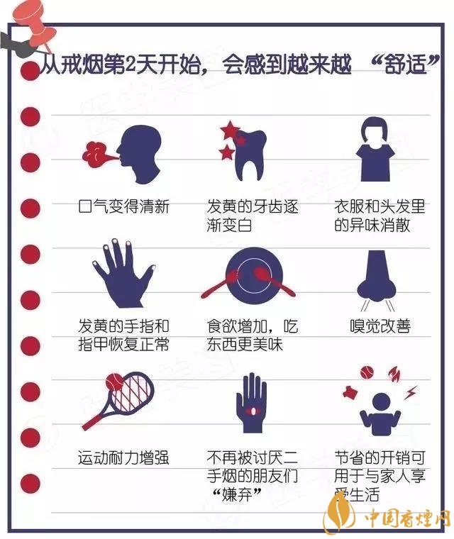 關(guān)于上面味覺(jué)和嗅覺(jué)的改善,個(gè)人感覺(jué),雖然只有8天,是有非常顯著的改善。呼吸也順暢了不少。只有戒煙后對(duì)這個(gè)圖是非常有共鳴的,一想到1個(gè)月后皮膚也會(huì)慢慢變好,就會(huì)更加堅(jiān)定自己的決心。戒煙的朋友們加油!想要了解更多內(nèi)容請(qǐng)點(diǎn)擊:為什么戒煙之后老是咳嗽 與肺部纖毛有關(guān)