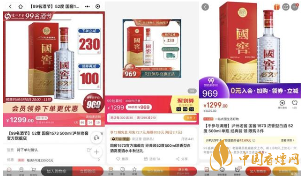 事實上,由于茅臺價格持續(xù)拉高,從而為五糧液、瀘州老窖等一線酒企的高端產(chǎn)品讓出價格調(diào)整空間。但細觀消費市場,國窖1573的價格并沒有完全突破千元。北京商報記者發(fā)現(xiàn),52度500ml國窖1573經(jīng)典裝官方旗艦店原價1499元/瓶,活動售價1299元/瓶。反觀其他電商平臺,該產(chǎn)品活動售價大多在1000元左右。其中,天貓旗艦店此前售價為1299元,活動售價僅969元;1919平臺此前售價為1399元,活動售價999元;酒仙網(wǎng)、蘇寧易購等活動售價為909元和969元。