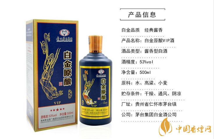 白金醬香,醉美中國,白金原釀VIP,瓶身黑色彰顯高貴,大氣,可謂精細所致,精致不凡的包裝。是您商務贈送,宴請,團圓小酌,自飲收藏的最佳選擇。酒如其名 VIP值得尊貴的您擁有。所以白金原釀VIP的市場零售的價格每瓶在999元,屬于高端產品。