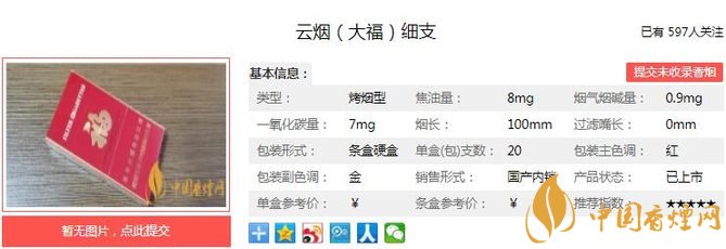 云系卷煙一直秉承自然天成的原料配伍的天然本香的調(diào)香風(fēng)格,主要來源于云南各地?zé)熑~產(chǎn)區(qū)優(yōu)質(zhì)煙葉原料的出產(chǎn)供給。煙支置于鼻下,沁人心脾的是淡淡的持久的烤煙自然香氣,帶有自然陳化綿長(zhǎng)的香氣。目前云煙大福細(xì)支售價(jià)未知。