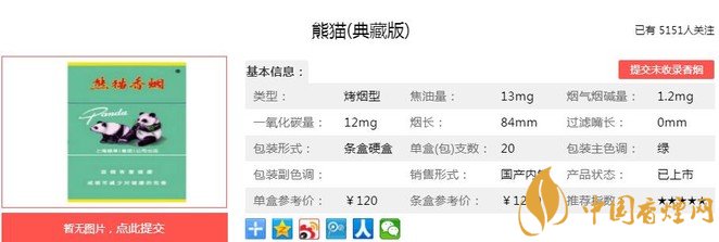 熊貓(典藏版),是“熊貓” 卷煙品牌家族中的經(jīng)典之作,有著近半個世紀(jì)的特供背景,深得偉人鄧小平鐘愛,享譽(yù)海內(nèi)外。直至1997年香港回歸之際,才以禮盒形式供應(yīng)市場,卷煙完全保持了特供時期的原汁原味,凝聚了歷史情感和偉人情結(jié),限時限量發(fā)售,是珍貴的收藏禮品。因此,熊貓(典藏版)的使命主要是強(qiáng)化表現(xiàn)熊貓品牌的至臻品質(zhì)、傳奇歷史和頂級形象,不以追求銷量為目的。經(jīng)香煙網(wǎng)小編市場調(diào)查熊貓(典藏版)售價為120元/包。