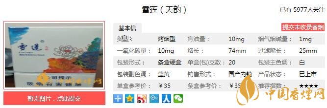 以上便是由香煙網(wǎng)小編為大家介紹的關(guān)于雪蓮天韻好抽嗎 雪蓮天韻價格及參數(shù)介紹的相關(guān)信息,想要了解更多有關(guān)內(nèi)容請點擊:芙蓉王軟金多少錢一包 芙蓉王軟金口感及參數(shù)介紹