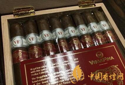 和很多中國新年設計一樣,這款雪茄采用紅色的盒子,帶有金色的裝飾,盒子采用翻蓋漆盒。每個盒子里面有16支雪茄。雪茄上帶有兩個標簽,一個是唯佳的標準標簽,一個是紅色印有一頭金色豬和中文乙亥的標簽。
