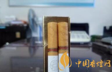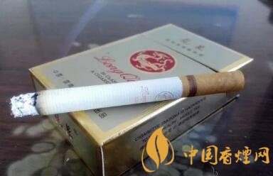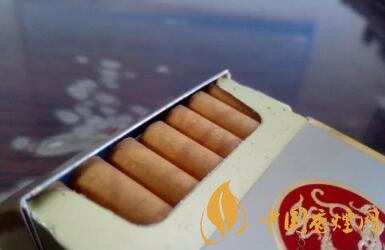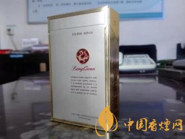 又是款淺金色調(diào)為主、修飾以深色金邊框的包裝設(shè)計(jì),有些像芙蓉王硬黃的造型。圓圈中的金龍?jiān)煨?,更像是抽象畫法的,沒有真龍或者其它帶有龍的圖案香煙的豐滿與霸氣。