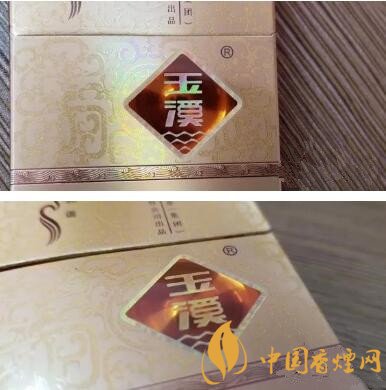 新版與老版正面其他的差別還有兩處:一是,右上角上蓋右側,紅塔煙草(集團)有限責任公司的文字標識,老版是在豎條的右側,新版則分列豎條的左右兩側;二是,煙盒居中右側的“玉溪”Logo,老款是深棕色單色底色,新版則是是淺棕色帶激光同心圓反射底紋。和版面的紋飾配合比較協(xié)調(diào),也更靈動一些。
