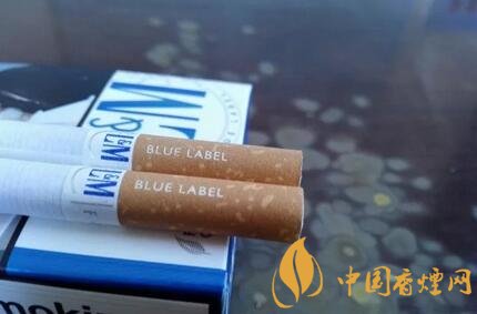 翻蓋后的設計樣式,跟GCC精切紅一樣。雖為藍色L&M,但過濾嘴依然是黃色。過濾嘴上印有BLUE LABEL,有別于紅款的RED LABLE。過濾嘴中間也有一條降焦線,水松紙上同樣印有FINE CUT字樣。