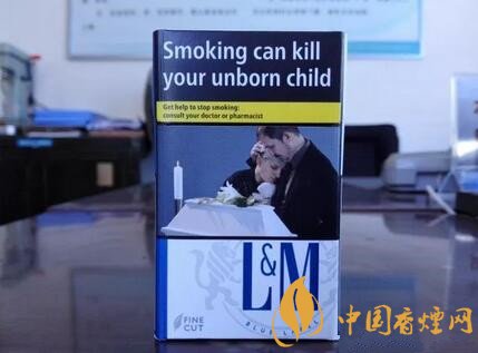 這是一款煙盒正反面均有警示圖片的版本,與單面警示圖片的法免藍駱駝還稍有區(qū)別。上文中的免稅GCC版本的精切紅L&M煙盒上的標識位于煙盒翻蓋處不同,法免藍是位于煙盒下方。FINE CUT字樣依然印制于煙盒的左下角。