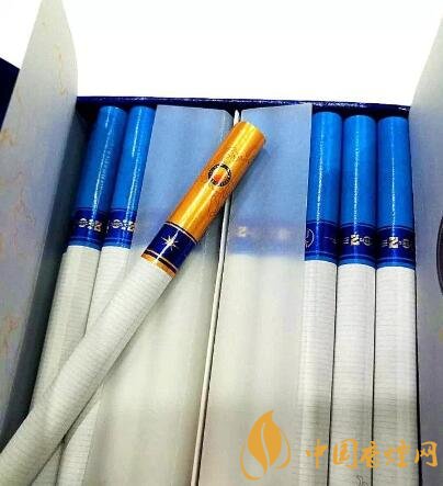 抽出幾支煙,看到過(guò)濾嘴的樣子,頓時(shí)覺(jué)得不同凡響。煙支居然采取少見的19+1搭配形式——1支金色嘴“煙王”和19支藍(lán)色嘴,馬上讓人聯(lián)想到,這必定是一款招待貴賓的好煙。