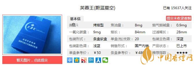 芙蓉王蔚藍(lán)星空選擇國(guó)內(nèi)外優(yōu)質(zhì)煙葉精細(xì)配組,寓勁于醇,寓醇于清,促進(jìn)口感醇厚飽滿,余味生津綿長(zhǎng),因此口感在醇厚度上顯現(xiàn)了新的升華。經(jīng)香煙網(wǎng)小編市場(chǎng)調(diào)查芙蓉王蔚藍(lán)星空售價(jià)為50元/包。
