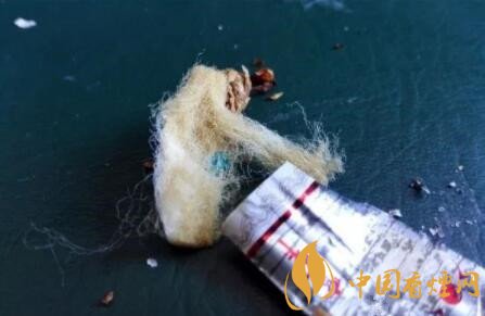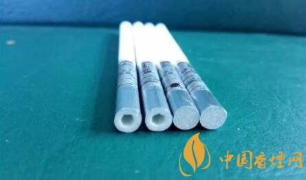 剪開鏤空樣式的過濾嘴,會發(fā)現有一層薄薄的黃色紙張,附著于過濾嘴紙張之上。鏤空過濾嘴的長度,約為6mm。