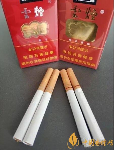 煙嘴上的文字皆一樣,從上往下是“雲(yún)煙”兩個(gè)字,成階梯形排列。在煙嘴表面的下部,各有一道圓箍,顏色與煙盒正面的logo的顏色相呼應(yīng)。