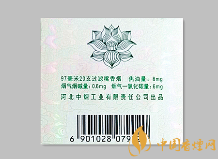 荷花綠水青山包裝第一眼看上去就是比較清新雅致的印象,它不是那種盛夏的喧鬧之景而是那種春末夏初的清新寧靜之感。正面的荷花logo依然是沿襲荷花系列的樣式,薄荷味的清香和包裝風格完美匹配,煙支的濾嘴也是淡淡的青色,綜合來說是一款顏值很高的細支煙。