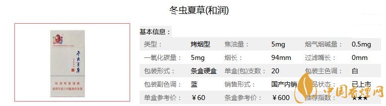 大家都知道冬蟲夏草是非常名貴的藥材,只要沾上冬蟲夏草,什么物品的價(jià)格都會(huì)猛升。那么你知道冬蟲夏草煙嗎?可想而知,冬蟲夏草煙一定是高檔香煙品牌了,今天小編就為大家介紹一款冬蟲夏草和潤的價(jià)格參數(shù),口感分析以及煙民們對(duì)他的點(diǎn)評(píng)。一起來看看吧!
