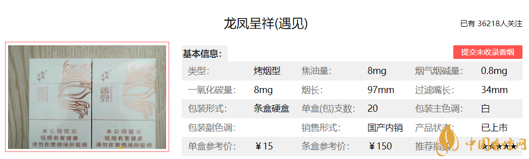 以上就是香煙網(wǎng)小編為大家整理介紹的龍鳳呈祥遇見(jiàn)香煙的價(jià)格參數(shù)以及煙民點(diǎn)評(píng),希望為大家提供幫助。想了解更多香煙信息,請(qǐng)關(guān)注香煙網(wǎng)!