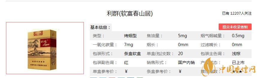 煙葉資源,秉承純煙葉打造,不添加任何香精香料,“”有“純天然、低焦低害”、“華夏第一支”的美譽。包裝設(shè)計上,無論是外包裝上還是煙支圖案,利群(富春山居)都完美展現(xiàn)了傳統(tǒng)文化之美和人文氣息。以帶給目標(biāo)消費人群“本色本香、自然純正”的高品質(zhì)品吸感受。目前利群(富春山居)主要有軟包和硬盒兩種規(guī)格,零售價格均超過5000元一條,雖然價格高昂,大多數(shù)煙民都抽不起。
