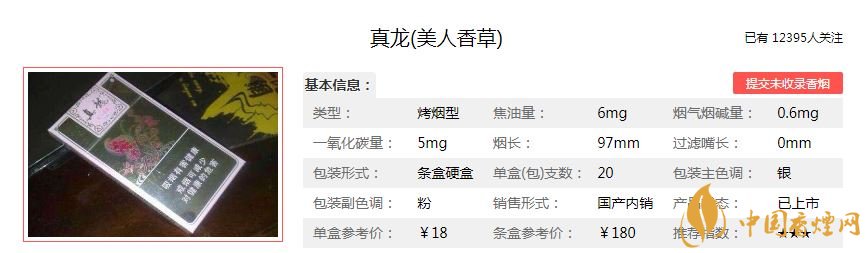以上就是香煙網(wǎng)小編為大家介紹的真龍美人香草香煙的價格參數(shù)、包裝設(shè)計以及煙民點評。希望為各位煙民提供幫助。想了解更多香煙信息,請關(guān)注香煙網(wǎng)。