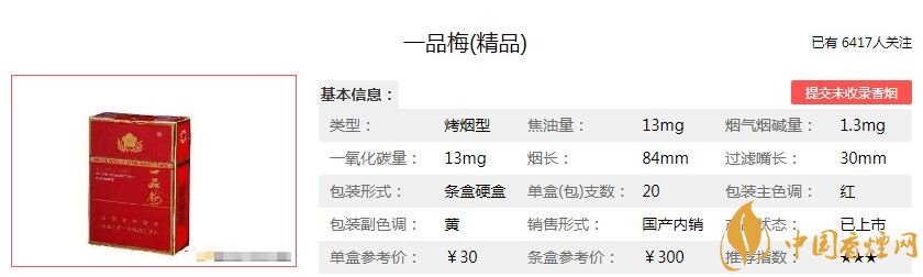 一品梅香煙是1991年創(chuàng)牌的,因?yàn)槭袌?chǎng)原因,一品梅香煙在市面上已經(jīng)很難看到了。相信大家對(duì)這款香煙沒(méi)有太多的了解,下面小編就為大家介紹一下一品梅精品香煙的價(jià)格參數(shù),以及抽過(guò)的煙民對(duì)這款一品梅精品香煙口感的評(píng)價(jià)。