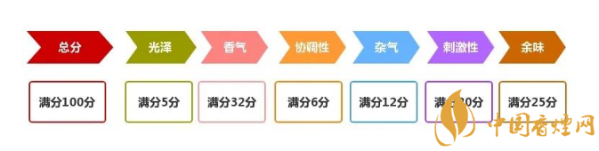 煙草行業(yè)對于成品卷煙明確的評價標準是百分制的感官評吸國標賦值法打分,質量評價指標由光澤、香氣、雜氣、刺激性、余味、協調6項指標組成,根據眼觀手觸吸食掌握的性狀打分,分值越高代表其品質越好。