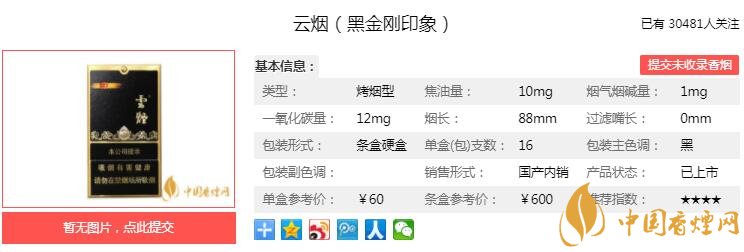 以上就是香煙網(wǎng)小編為大家講解的云煙黑金剛印象香煙的相關(guān)內(nèi)容,希望對(duì)大家有所幫助。了解更多相關(guān)咨詢,請(qǐng)關(guān)注香煙網(wǎng)。小編溫馨提示:吸煙有害健康,請(qǐng)您盡早戒煙。