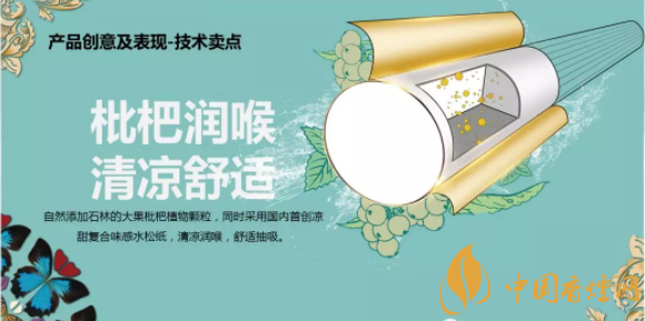 產品特點:選用可直接飲用的國家1類水質—撫仙湖水滋養(yǎng)的玉溪莊園小產區(qū)煙葉,片片純凈,清香純正。自然添加阿詩瑪故鄉(xiāng)石林的大果枇杷植物顆粒,同時采用國內首創(chuàng)涼甜復合味感水松紙,清涼潤喉,舒適抽吸。自然萃取天然,清甜回甘,愉悅享受,豐富抽吸滿足感。