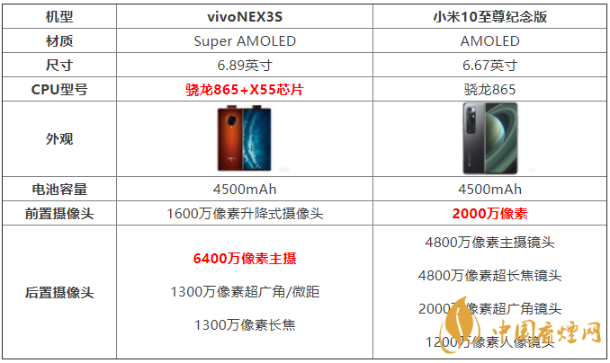 vivoNEX3S和小米10至尊紀(jì)念版參數(shù)對(duì)比
