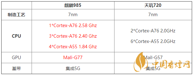 麒麟985:7nm工藝打造,采用了“1+3+4”的八核構(gòu)架,1個(gè)頻率為2.58GHz的Cortex-A76大核。