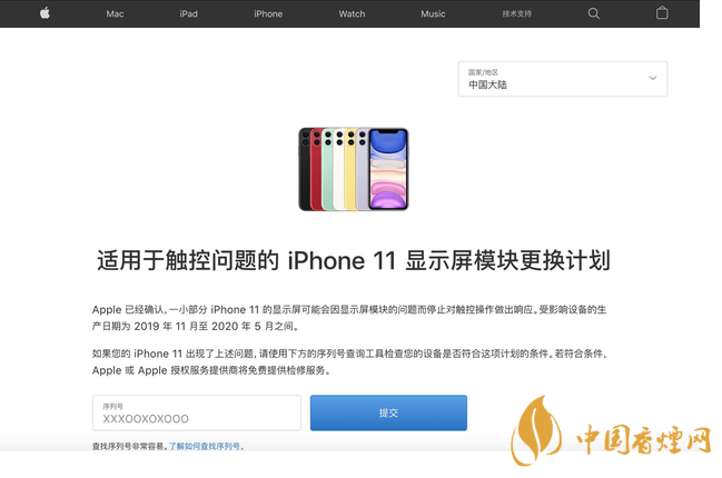 首先用戶需要到該界面輸入手機序列號,查詢是否屬于受影響的用戶。