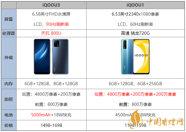 QOOU3于今日正式上架,那么iQOOU3和iQOOU1對(duì)比,有哪些參數(shù)配置上的區(qū)別,iQOOU3和iQOOU1哪個(gè)好,哪款性?xún)r(jià)比會(huì)更高呢,接下來(lái)香煙網(wǎng)小編將對(duì)iQOOU3和iQOOU1的參數(shù)配置對(duì)比進(jìn)行介紹,感興趣的朋友一起來(lái)看看吧!