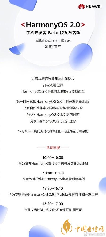 鴻蒙OS2.0什么時候發(fā)布?12月14日,華為消費(fèi)者BG軟件部總裁華為王成錄 宣布,將于12月16日在北京發(fā)布HarmonyOS 2.0手機(jī)開發(fā)者Beta版本。下面香煙網(wǎng)小編將為大家?guī)碓敿?xì)介紹,感興趣的朋友一起來看看吧!