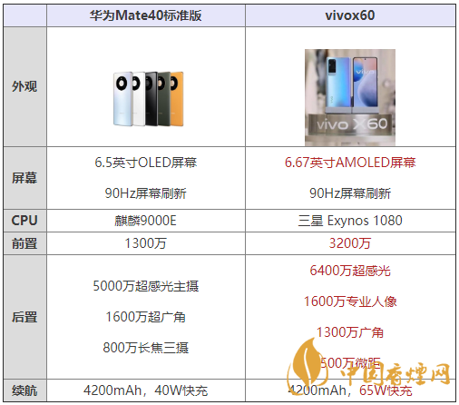 通過上面的介紹,相信大家對華為Mate40標(biāo)準(zhǔn)版和vivox60哪款手機更好以及參數(shù)配置對比都有了一定了解了,希望對大家在選擇時有所幫助。了解更多實用手機相關(guān)咨詢,請關(guān)注香煙網(wǎng)。