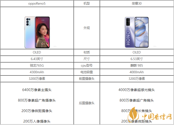 opporeno5和榮耀30哪款手機更好?opporeno5手機是oppo最近發(fā)布的一款5G手機,榮耀30S也是一部性價比很高的手機。這兩款手機除了性能上還有什么差距呢?下面香煙網(wǎng)小編將對opporeno5和榮耀30參數(shù)對比進行介紹,一起來看看吧!