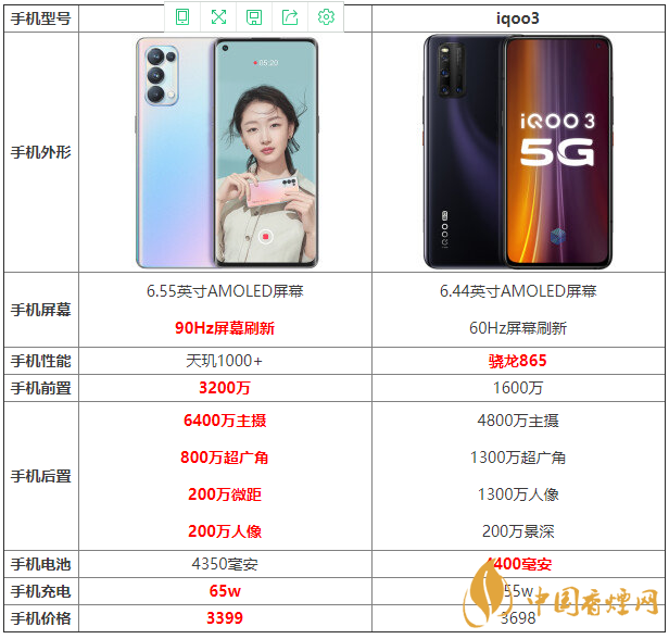 opporeno5pro和iqoo3哪款手機(jī)更值得入手?許多小伙伴對此都十分猶豫,這兩款手機(jī)在參數(shù)方面有什么區(qū)別?哪款手機(jī)的性價比更高?下面香煙網(wǎng)小編將為大家介紹opporeno5pro和iqoo3參數(shù)對比,感興趣的朋友一起來看看吧!