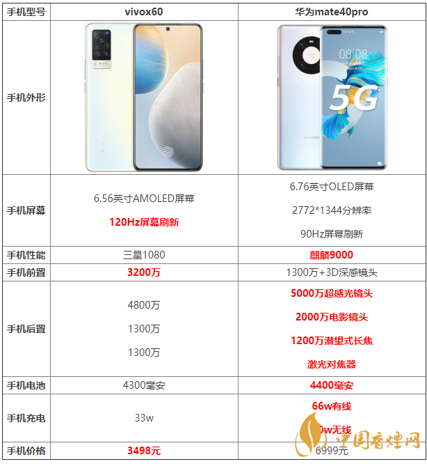 許多小伙伴對vivox60和華為mate40pro手機(jī)十分關(guān)心,不知道從何入手,那么這兩款手機(jī)直接有什么不同之處?哪款手機(jī)更好?哪款手機(jī)更值得入手?下面香煙網(wǎng)小編將對vivox60和華為mate40pro參數(shù)對比進(jìn)行介紹,一起來看看吧!