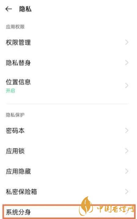 2、在隱私頁面點擊【系統(tǒng)分身】。