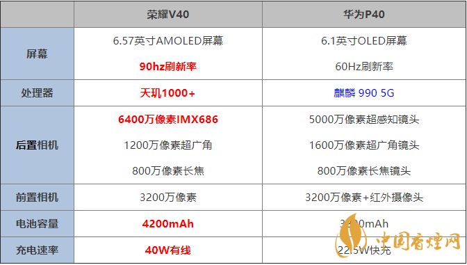 榮耀v40:搭載了天璣1000+,天璣1000+采用了7nm工藝制程,四個(gè)2.6GHz的A77大核和四個(gè)2.0GHz的A55小核,支持2G/3G/4G/5G多制式,支持 5G 雙載波聚合(2CC CA),支持Sub-6GHz頻段,支持4.7Gbps的下行速度