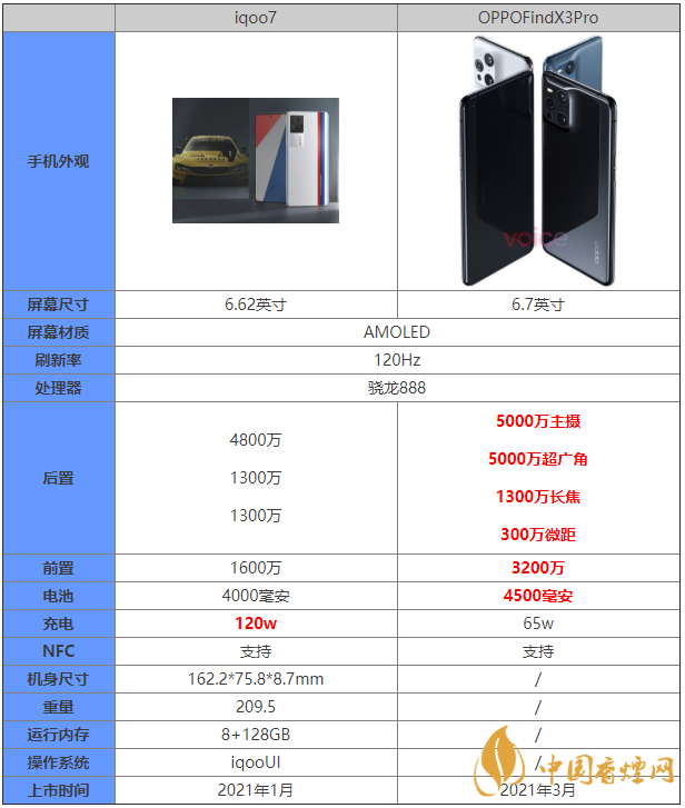 OPPOFindX3Pro和iqoo7都是搭載的驍龍888處理器,那么這兩款手機(jī)的區(qū)別是什么?哪款手機(jī)的性價比更高?哪款手機(jī)更值得入手?下面香煙網(wǎng)小編為大家?guī)鞳PPOFindX3Pro和iqoo7參數(shù)對比,快來看看吧。