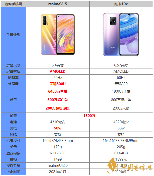 realmev15和紅米10x這兩款手機(jī)都在千元機(jī)的范圍,許多小伙伴不知道入手哪款手機(jī),那么這兩款手機(jī)的區(qū)別是什么?有什么不同之處?哪款手機(jī)更值得入手?下面香煙網(wǎng)小編為大家?guī)碜钚碌膔ealmev15和紅米10x參數(shù)對比,快來看看吧。