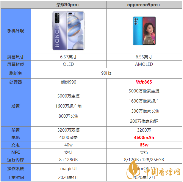 =opporeno5pro+和榮耀30pro+都是大家十分關(guān)注的手機(jī),那么這兩款手機(jī)的區(qū)別是什么?哪款手機(jī)更好?哪款手機(jī)更值得入手?下面香煙網(wǎng)下?lián)苄【帪榇蠹規(guī)碜钚碌膐pporeno5pro+和榮耀30pro+參數(shù)對比,感興趣的朋友快來看看吧。