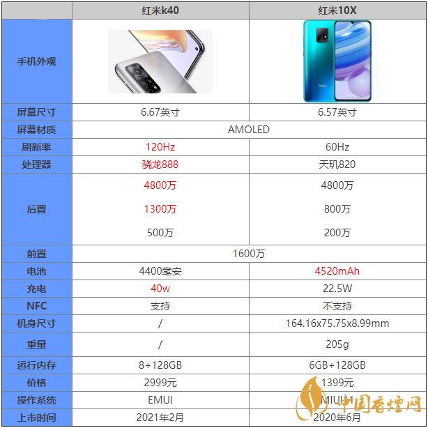 紅米K40即將上市,許多朋友對(duì)這款手機(jī)都十分期待,那么紅米K40和紅米10X有什么區(qū)別?哪款手機(jī)更值得入手?下面香煙網(wǎng)小編為大家?guī)砑t米K40和紅米10X的詳細(xì)對(duì)比介紹,感興趣的朋友一起來看看吧!