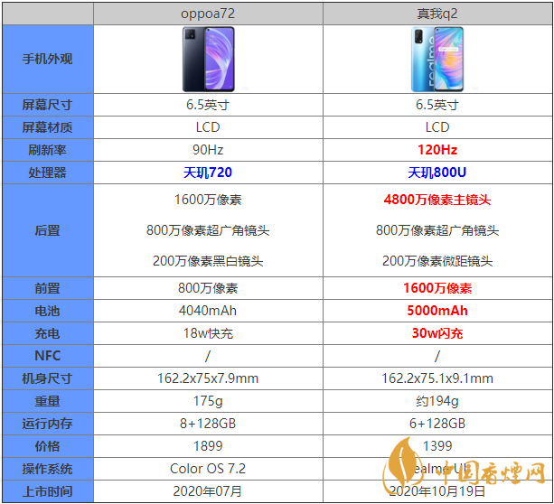 小結(jié):真我q2的前置以及后置的參數(shù)規(guī)格都比oppoa72要高,所以?真我q2的拍照效果更好。?